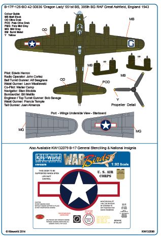 Kits-World - 1/32 Boeing B-17F-125-BO Flying Fortress 42-30836 'Dragon Lady' 551st BS 385th BG (HR-V)