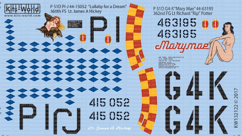 Kits-World - 1/32 North-American P-51D Mustang 44-15052 PI-J Lullaby for a Dream Pilot Lt. James A Hickey. 360th FS, 356th FG, Martlesham Heath, 1945.