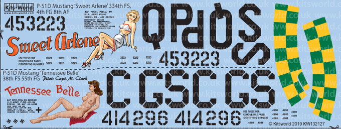 Kits-World - 1/32 North-American P-51D Mustang 44-53223 QP-S 'Sweet Arlene' 334th FS 4th FG 8th AF - North-American P-51D Mustang 44-14296 CG-S Tennessee Belle 38th FS 55th