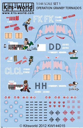 Kits-World - 1/144 Panavia Tornado GR.1 Desert Storm 1991 (4) ZA465/FK Foxy Killer 16 Sqn Tabuk, ZD790/D Debbie/Snoopy Airways, 31 Sqn Bahrain, ZD850/CL Cherry Lips,, 2 Sqn Tabuk, ZD892/H Helen/Snoopy Airways 617 Sqn Maharraq,