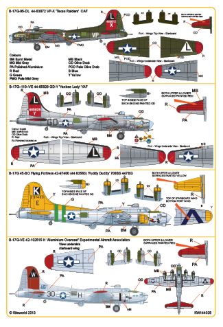 Kits-World - 1/144 Scale Boeing B-17G-95-DL Flying Fortress 44-83872 VP-X 'Texas Raiders' 'L' Caf B-17G-110-VE 44-85829 GD-Y ' Yankee Lady' 'L' Yaf B-17G-45-BO 42-97400 (44-83563) 'Fuddy Duddy' 708BS 447BG B-17G-VE 42-102516 H 'Aluminium Overcast' Eaa