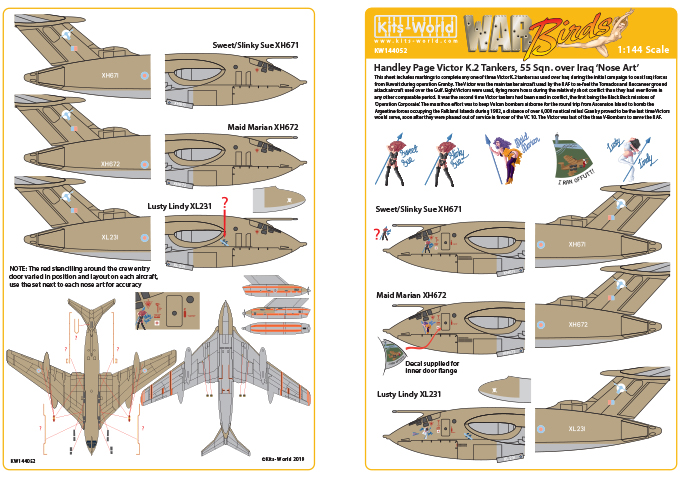 Kits-World - 1/144 Handley-Page Victor K.2 tankers 55 Sqn over the Iraq Set 1 Maid Marian XH672, Lusty Lindy XL231, Sweet/Slinky Sue XH671.