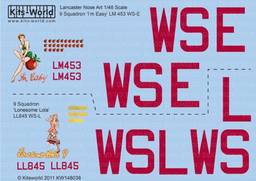 Kits-World - 1/48 Avro Lancaster B.I/III (2) LM453 WS-E I m Easy , LL845 WS-L Lonesome Lola both 9 Sqn, Individual aircraft markings only.