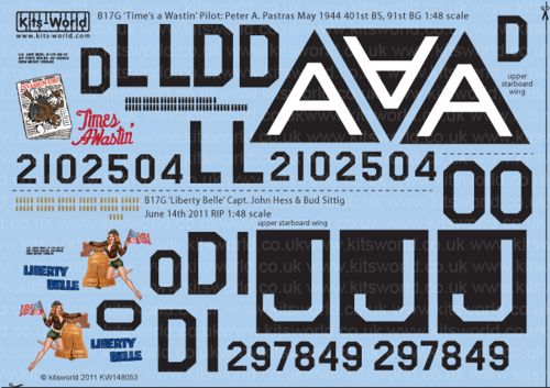 Kits-World - 1/48 Boeing B-17G Flying Fortress 91st Bg (2) 42-97849 DI-O Square J 'Liberty Belle', 42-102504 LL-D Triangle A 'Times A Wastin'