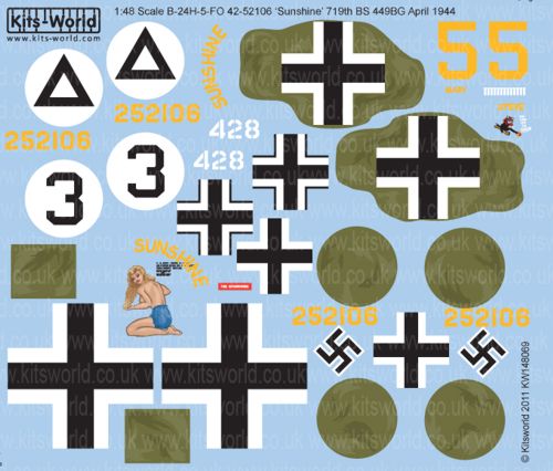 Kits-World - 1/48 Consolidated B-24H-5-FO 42-52106 'Sunshine' 719th Bs 449BG April 1944 Captured Aircraft. Liberator