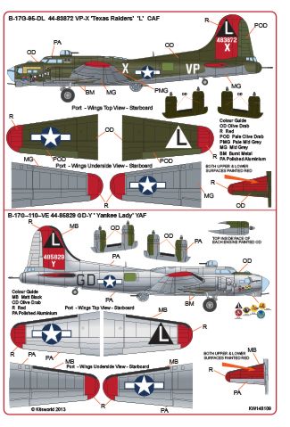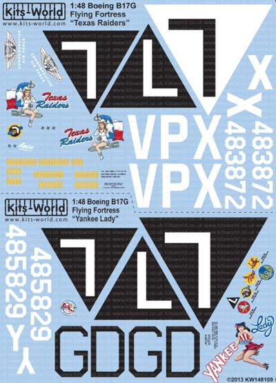 Kits-World - 1/48 Boeing B-17G-95-DL Flying Fortress 44-83872 VP-X 'Texas Raiders' 'L' CAF - B-17G-110-VE 44-85829 GD-Y ' Yankee Lady' 'L' YAF