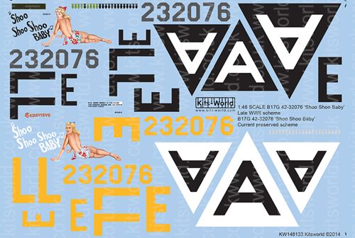 Kits-World - 1/48 Scale Boeing B-17G Flying Fortress 42-32076 'Shoo Shoo Baby' Late WWII scheme B17G 42-32076 'Shoo Shoo Baby' current preserved scheme