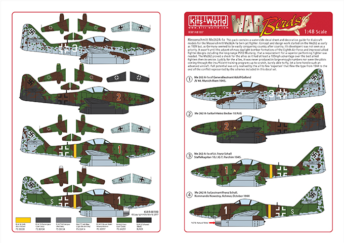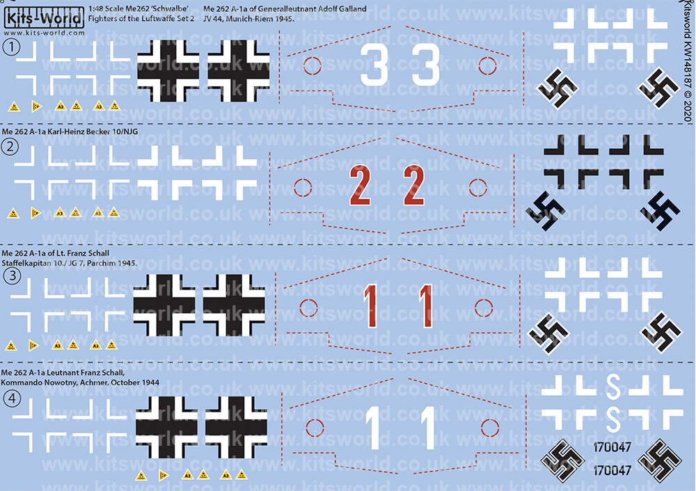 Kits-World - 1/48 Messerschmitt Me 262A-1a of Generalleutnant Adolf Galland, Jv 44, Munich-Riem 1945.