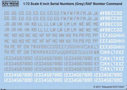 Kits-World - 1/72 8 inch Serial Numbers (Medium Sea Grey/White) RAF Bomber