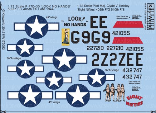 Kits-World - 1/72 Republic P-47D Thunderbolt G9-E 42-27210 (42-1055) Thunderbolt 'Look No Hands' 509th Fg 405th Fs P-47 2Z-E 44-32747 'Eight Nifties' 405thFG/510th Fs