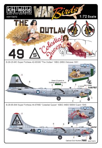 Kits-World - 1/72 Boeing B-29-25-MO Super Fortress 42-65306 'The Outlaw' 19BG 28BS Okinawa 1951 B-29-85-BW 44-87660 Celestial Queen 40BG 44BS 58BW 1945