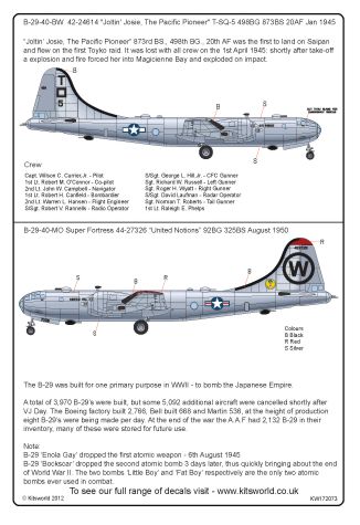 Kits-World - 1/72 Boeing B-29-40-BW Super Fortress 42-24614 Joltin' Josie, The Pacific Pioneer T-SQ-5 498BG 873BS 20AF Jan 1945 B-29-40-MO 44-27326 United Notions 92BG 325BS August 1950