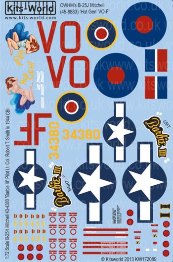 Kits-World - 1/72 North-American Mitchell B25J 'Hot Gen' 45-8883 CWHM's; B-25H 'Barbie III Pilot Lt Col Robert T. Smith 1944 CBI