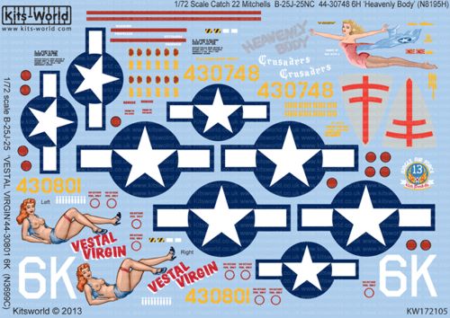 Kits-World - 1/72 Scale Catch 22 Mitchells North-American B-25J-25NC 44-30748 6H 'Heavenly Body' (N8195H) B-25J-25 'VESTAL VIRGIN'44-30801 6K (N3699C)