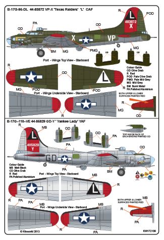 Kits-World - 1/72 Scale Boeing B-17G-95-DL Flying Fortress 44-83872 VP-X 'Texas Raiders' 'L' Caf B-17G-110-VE 44-85829 GD-Y ' Yankee Lady' 'L' Yaf