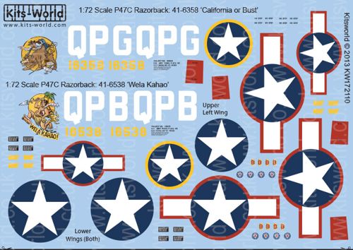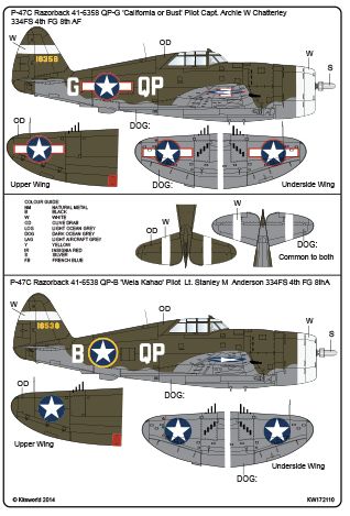 Kits-World - 1/72 Scale Republic P-47C Razorback 41-6358 QP-G 'California or Bust' Pilot Capart Archie W Chatterley 334FS 4th Fg 8thAF P-47C Razorback 41-6538 QP-B 'Wela Kahao' Pilot Lt. Stanley M Anderson 334FS 4th Fg 8th Af