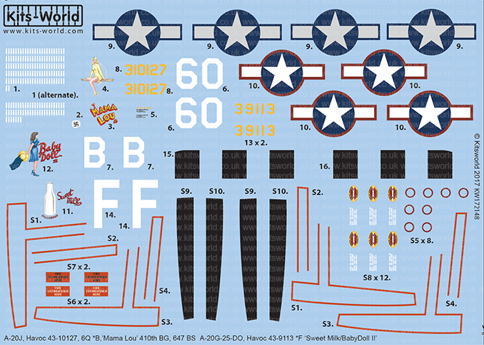 Kits-World - 1/72 Douglas A-20J, Havoc 43-10127, 60*B, 'Mama Lou' 410th BG, 647 BS.