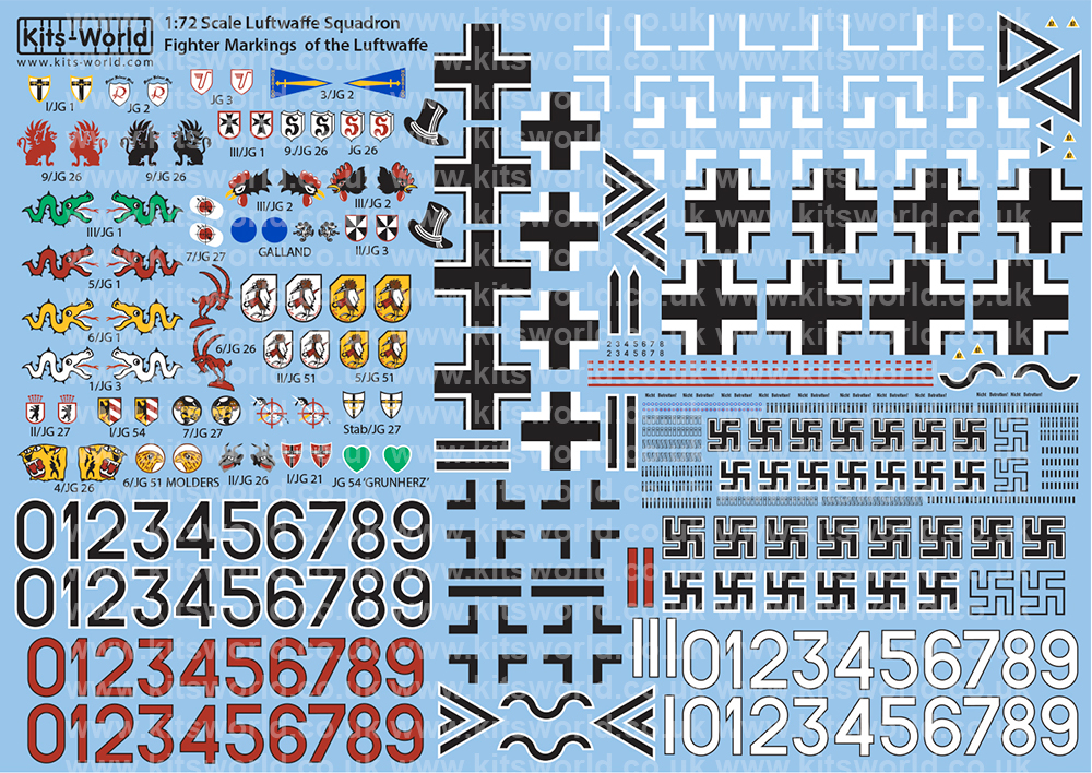 Kits-World - 1/72 Luftwaffe Squadron Fighter Markings of the Luftwaffe.