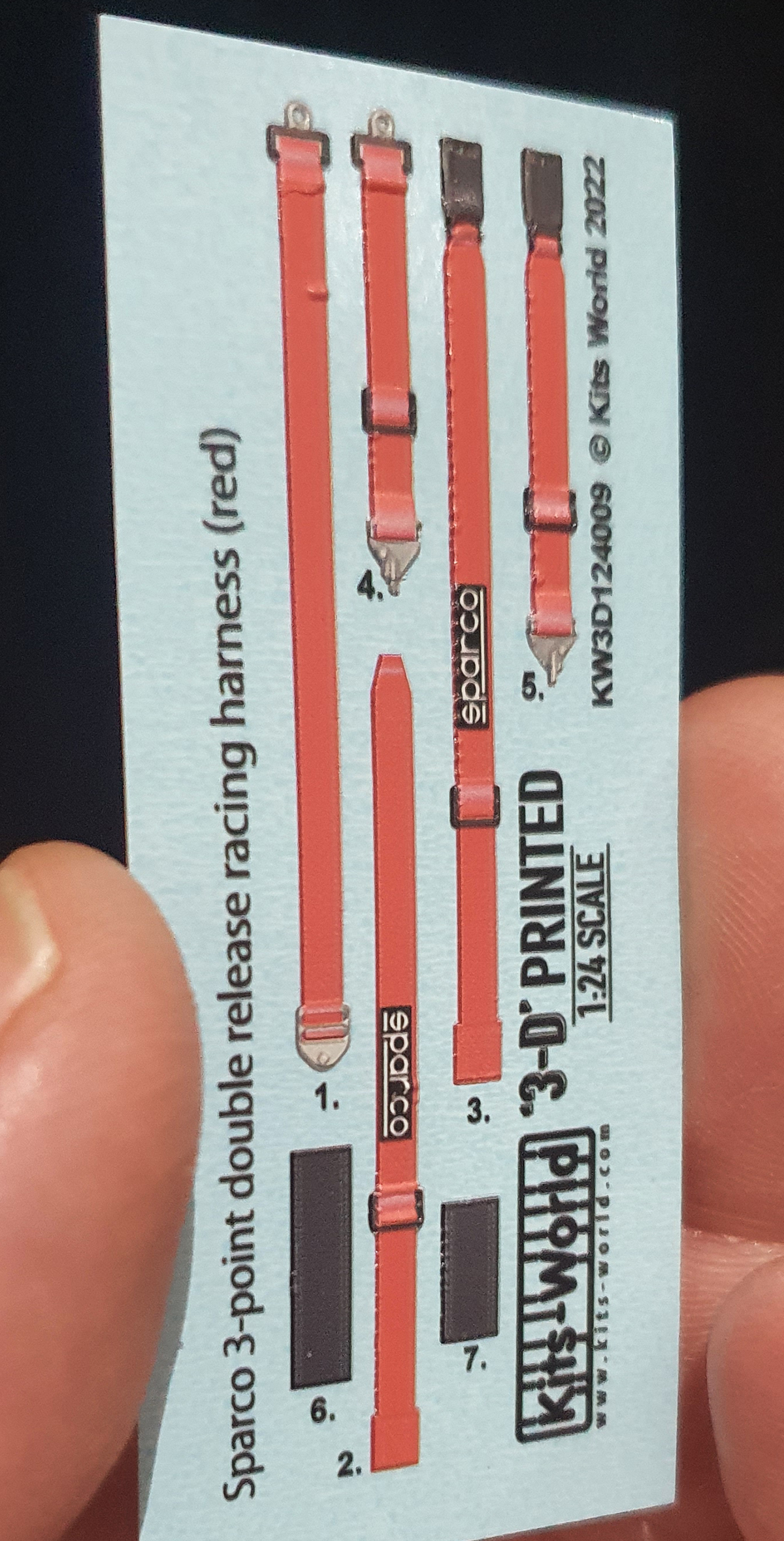 Kits-World - 1/24 'Sparco' 3 point double release Racing Harness 'Red'. Kitsworld 3D Full Colour