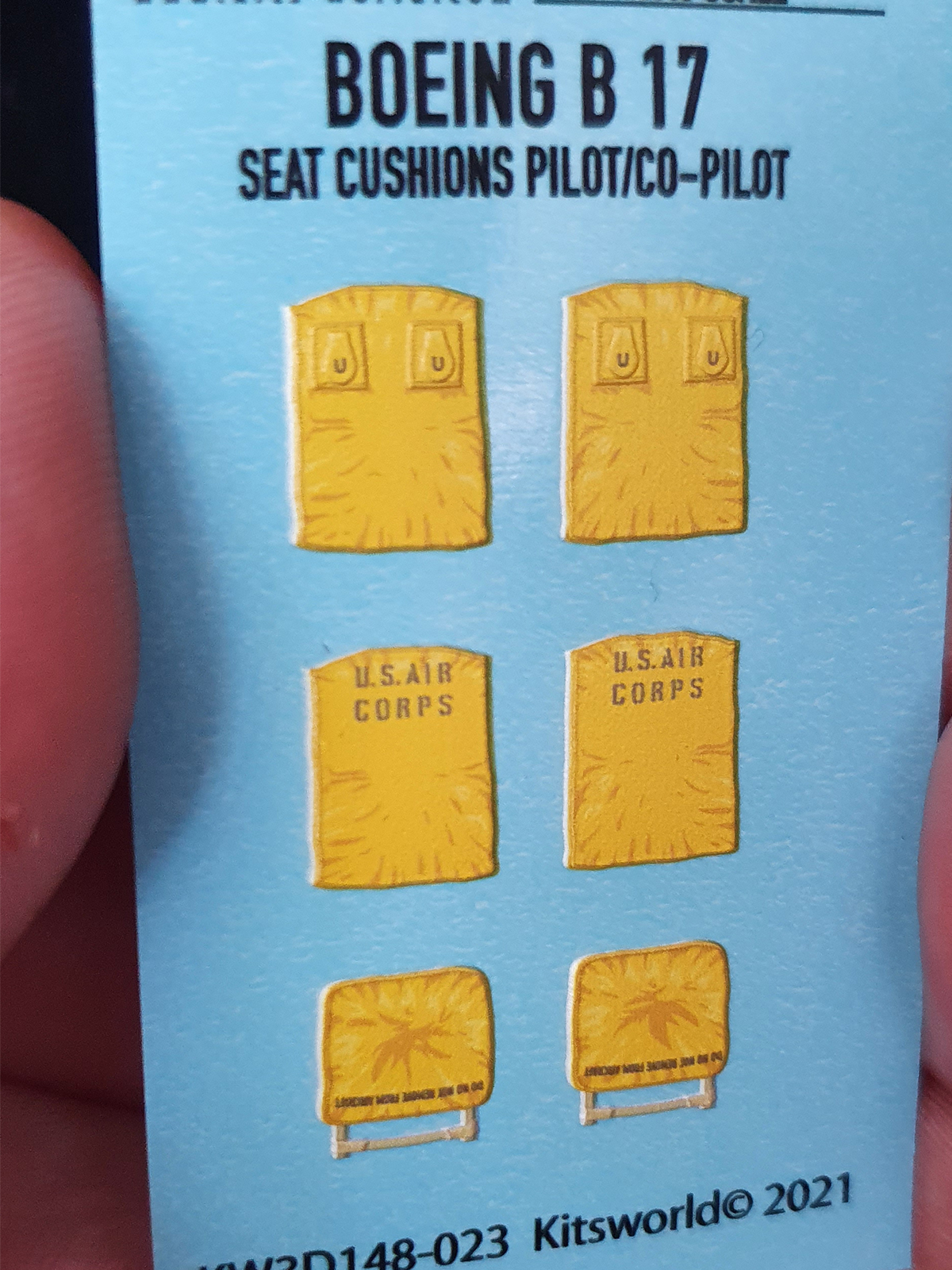 Kits-World - 1/48 Boeing B-17F/B-17G Flying Fortress 3D seat cushion decals (for Hong Kong Models HKM01F002), Monogram MG5600 and Revell RV4297 kits)