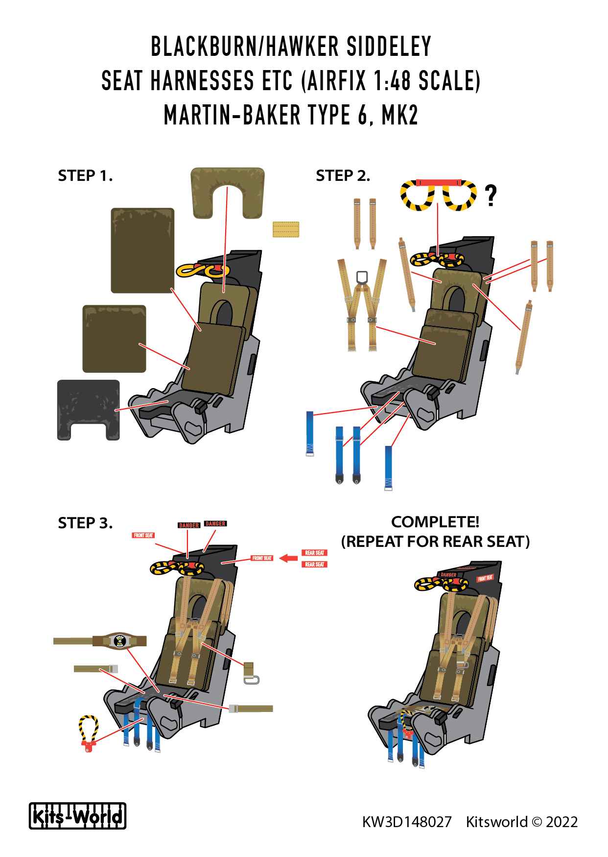 Kits-World - 1/48 3D Seat Belts And CUSHIONS. Blackburn Buccaneer Martin Baker Type 6 Mkii Ejection SEAT. (for Airfix kits)