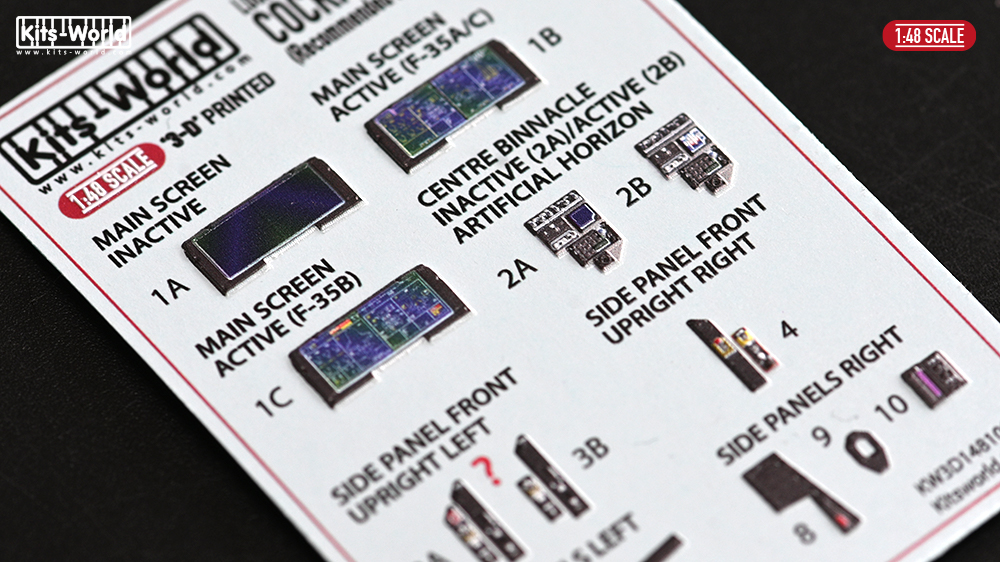 Kits-World - 1/48 3D Full colour Instrument Panels Lockheed-Martin F-35A, F-35B, F-35C Lightning screens off/ active (for Tamiya TA61124 kits)
