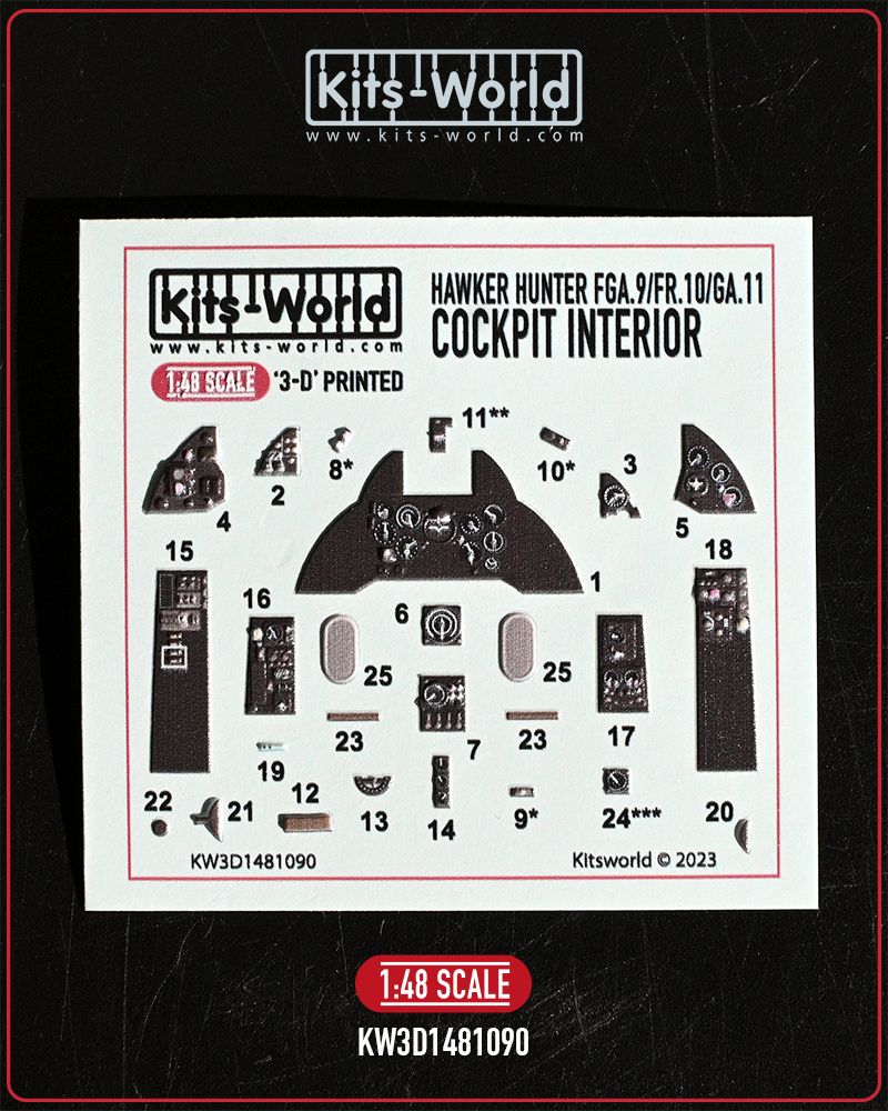 Kits-World - 1/48 Hawker Hunter FGA.9/FR.10/GA.11 3D-Printed cockpit interior for Airfix kits