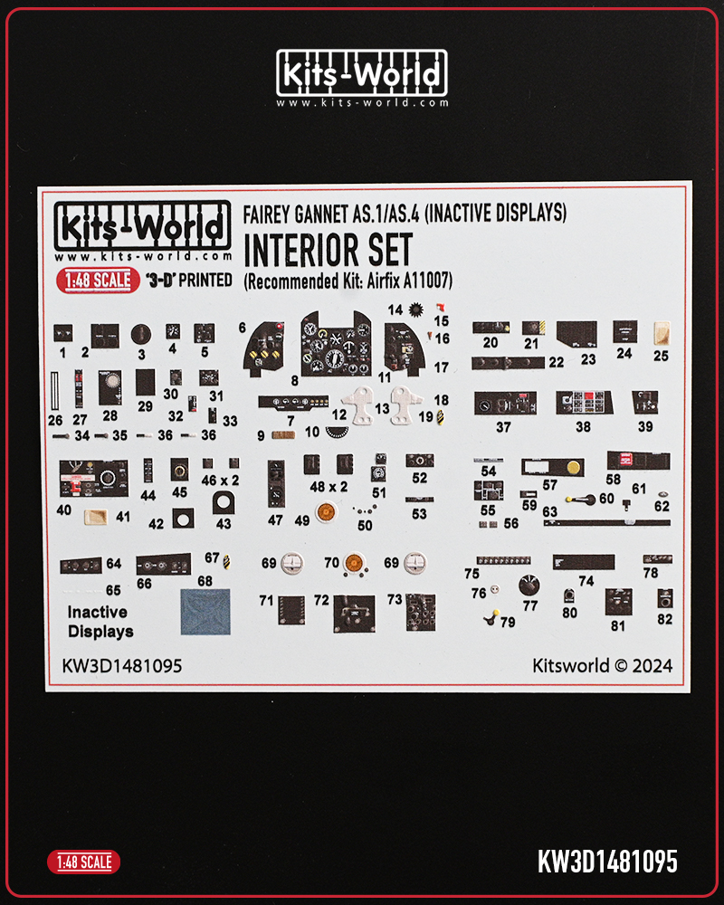 Kits-World - 1/48 Fairey Gannet AS.1/AS.4 Inactive Display cockpit interior detail set for Airfix