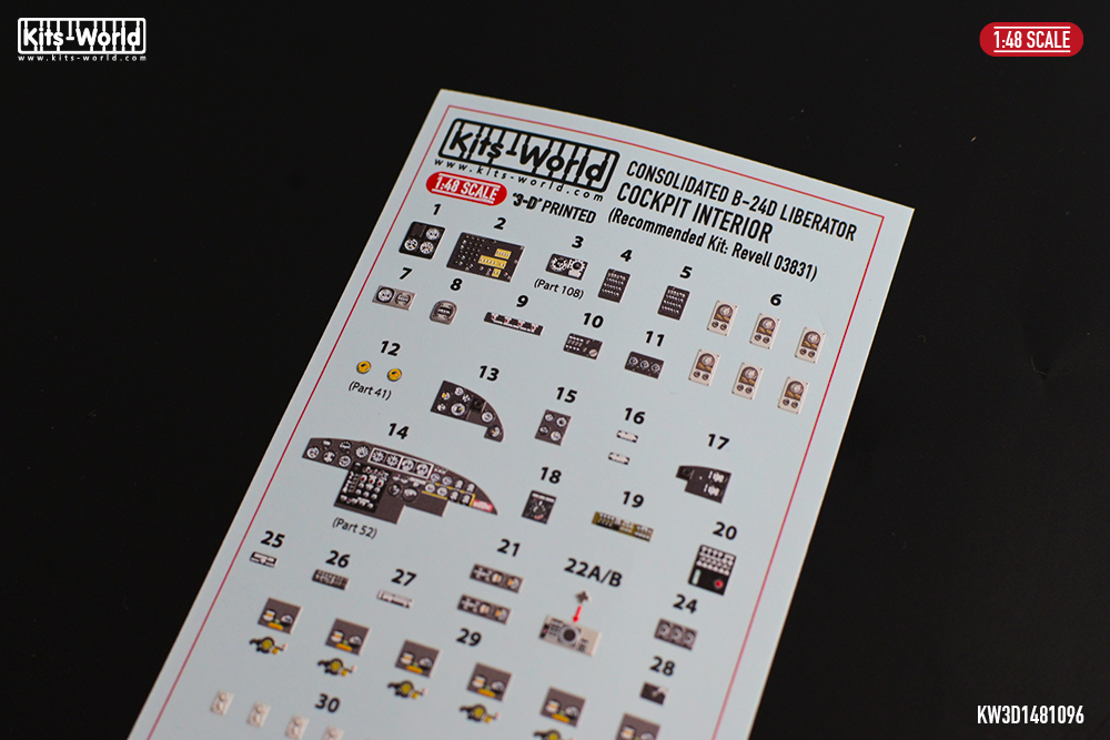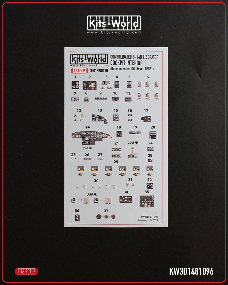 Kits-World - 1/48 Consolidated B-24D Liberator cockpit interior detail set for Revell