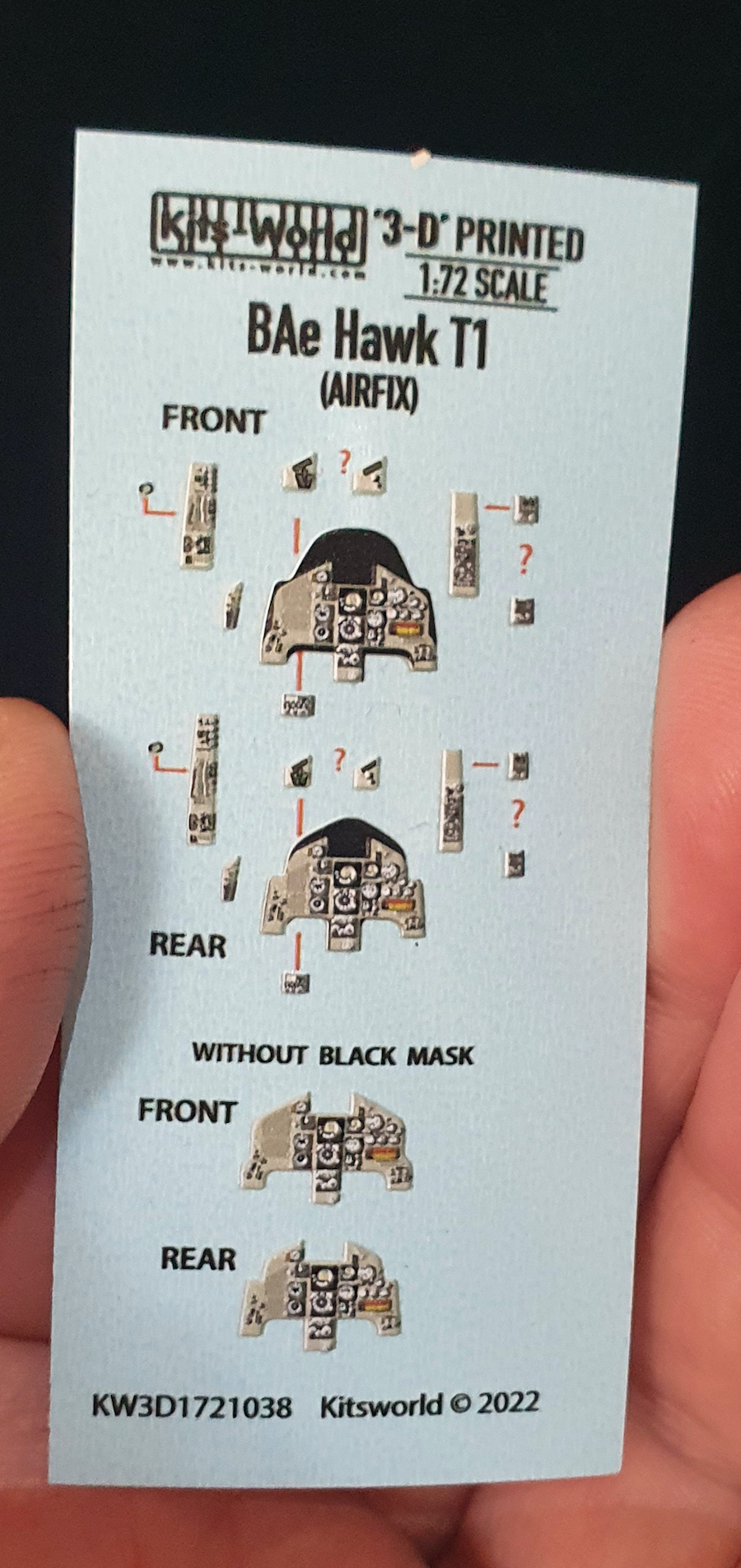 Kits-World - 1/72 Bae Hawk T1 3D Full colour Instrument Panels Recommended Kit Airfix.