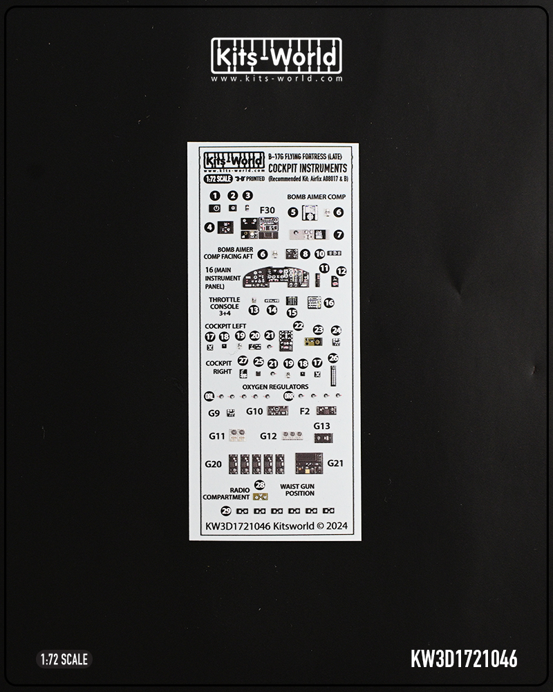 Kits-World - 1/72 Boeing B-17G Flying Fortress Late Version 3D Full colour Instrument Panels for Airfix AX08017 and AX08017B