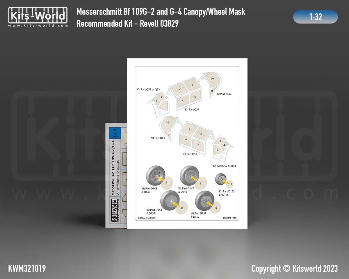 Kits-World - 1/32 Messerschmitt Bf-109G-2/Bf-109G-4 wheels and canopy frame paint mask for outside onlyfor Revell RV3829 kits