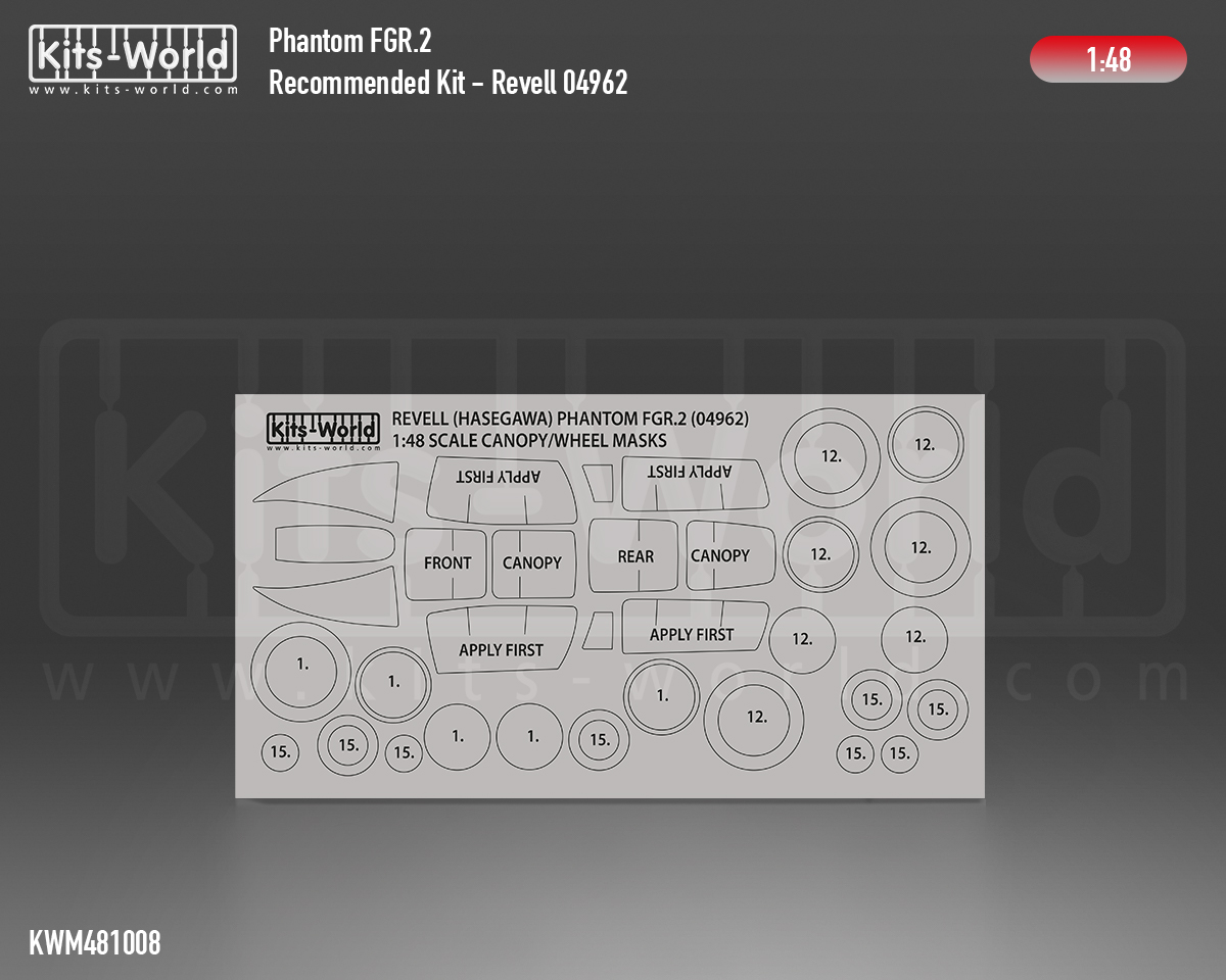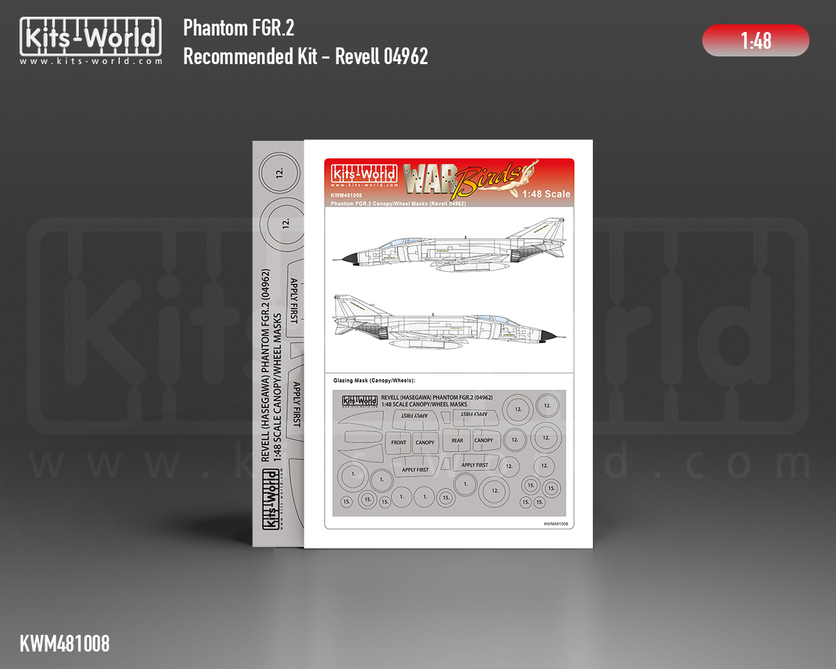 Kits-World - 1/48 McDonnell F-4 Phantom wheels and canopy paint mask outside only (for Hasagawa kits)