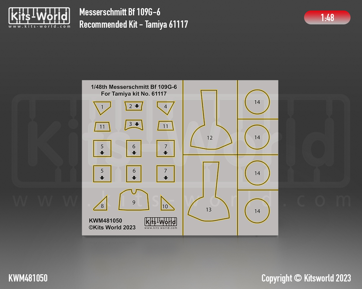 Kits-World - 1/48 Messerschmitt Bf-109G-6 wheels and canopy frame paint masks for Tamiya