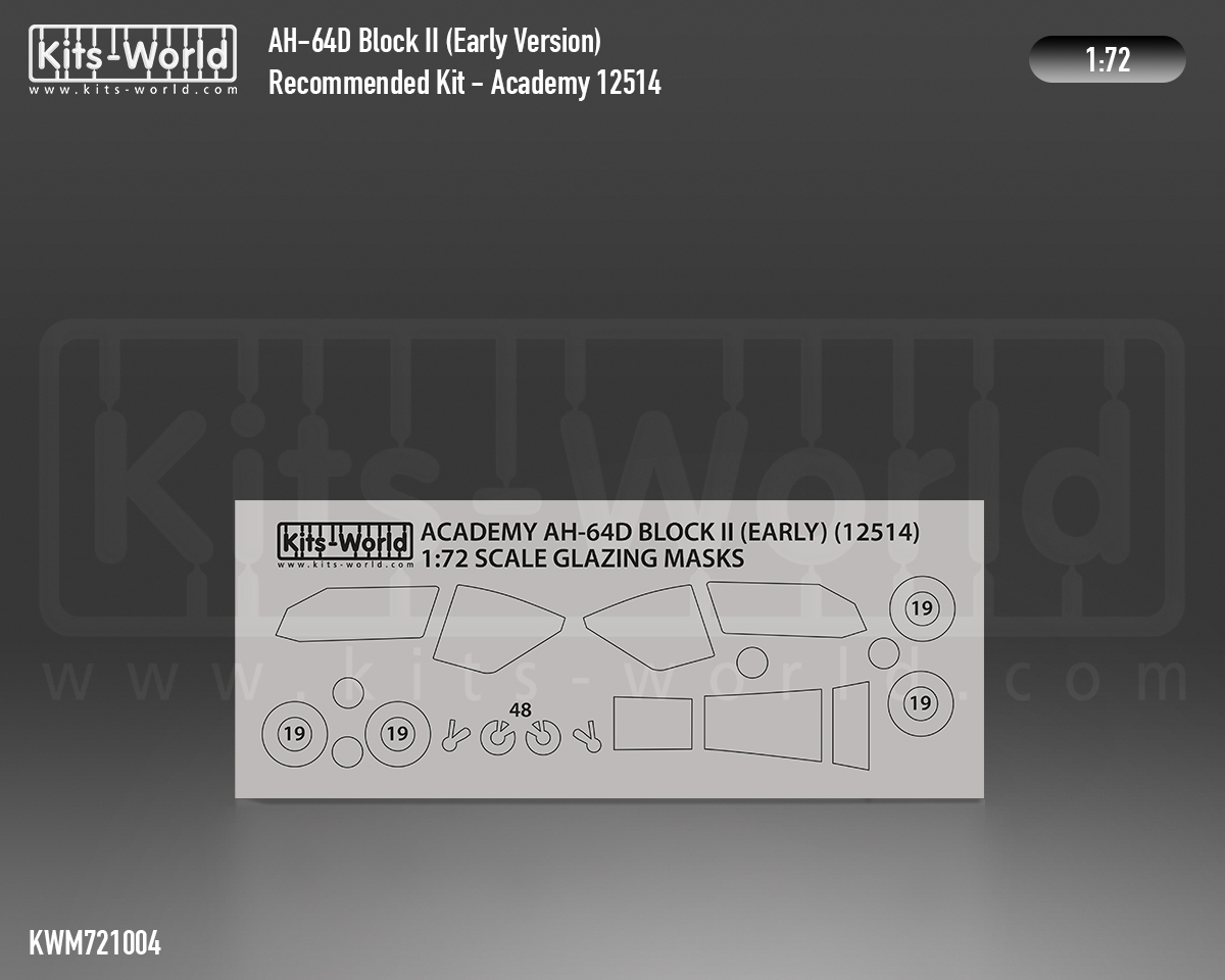 Kits-World - 1/72 Boeing/Hughes AH-64A Apache wheels and canopy paint mask outside only (for Academy kits)