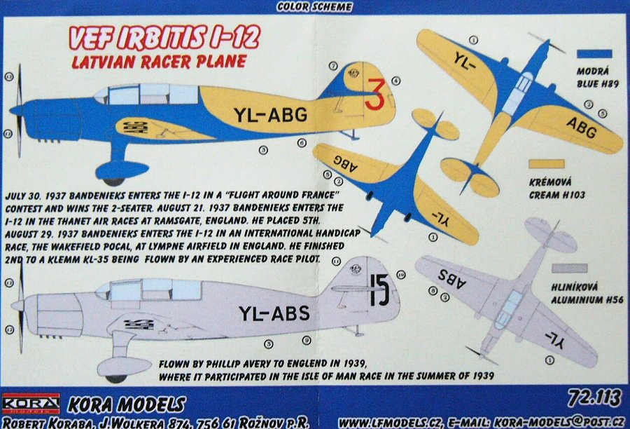 Kora Model - 1/72 VEF Irbitis I-12 Latvian racer