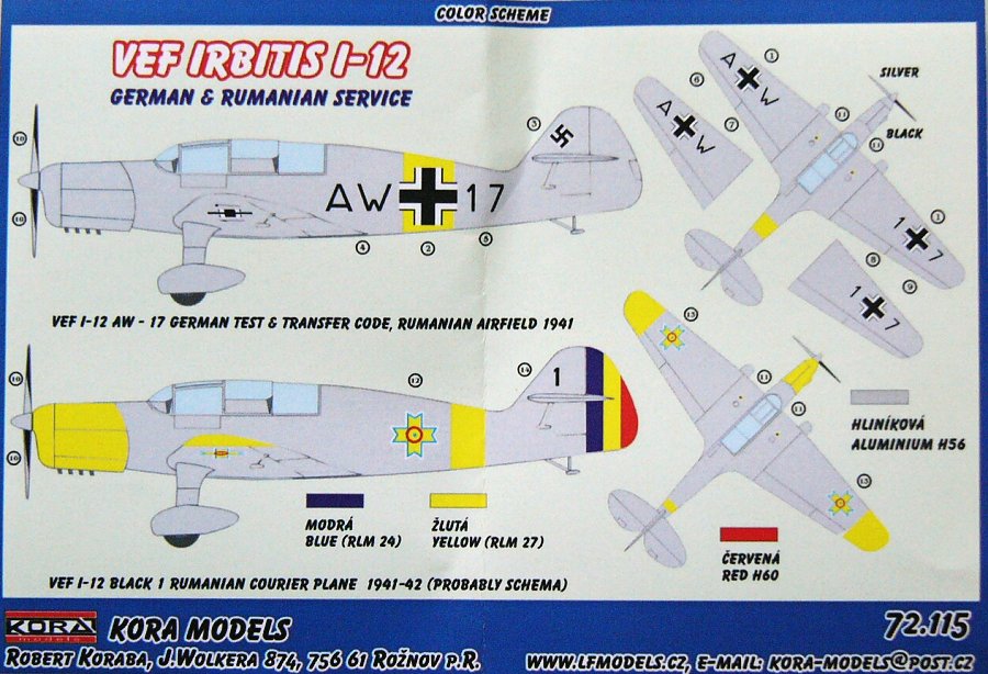 Kora Model - 1/72 VEF Irbitis I-12 German & Rumanian service