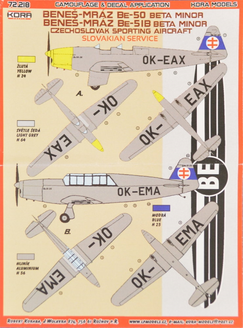 Kora Model - 1/72 Be-50 & Be-51B Beta Minor (Slovakia) 2-in-1