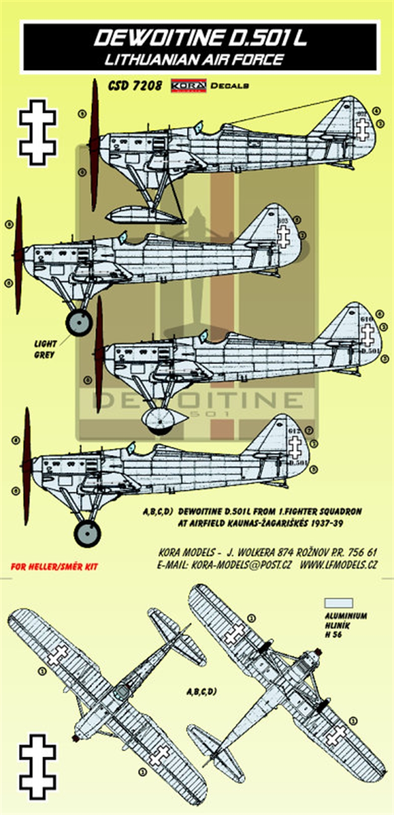 KORA MODEL - 1/72 Dewoitine D.501L Detail set&decal (Lithuania)