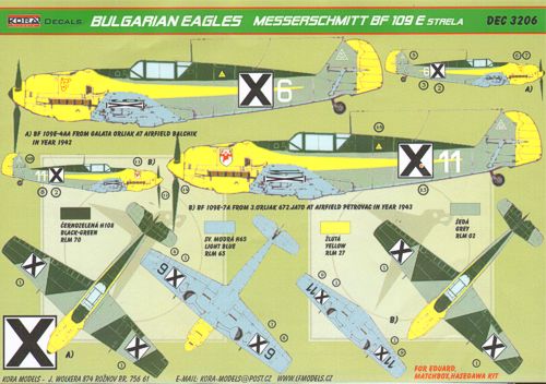 Kora Model - 1/32 Decals Bf 109 E Strela (Bulgarian Service)