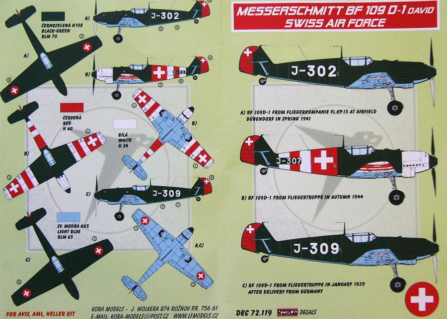 Kora Model - 1/72 Decals Bf 109 D-1 David (Swiss AF)
