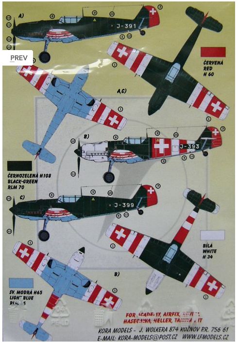 Kora Model - 1/72 Decals Bf 109 E-3A Emil Part VIII (Swiss AF)