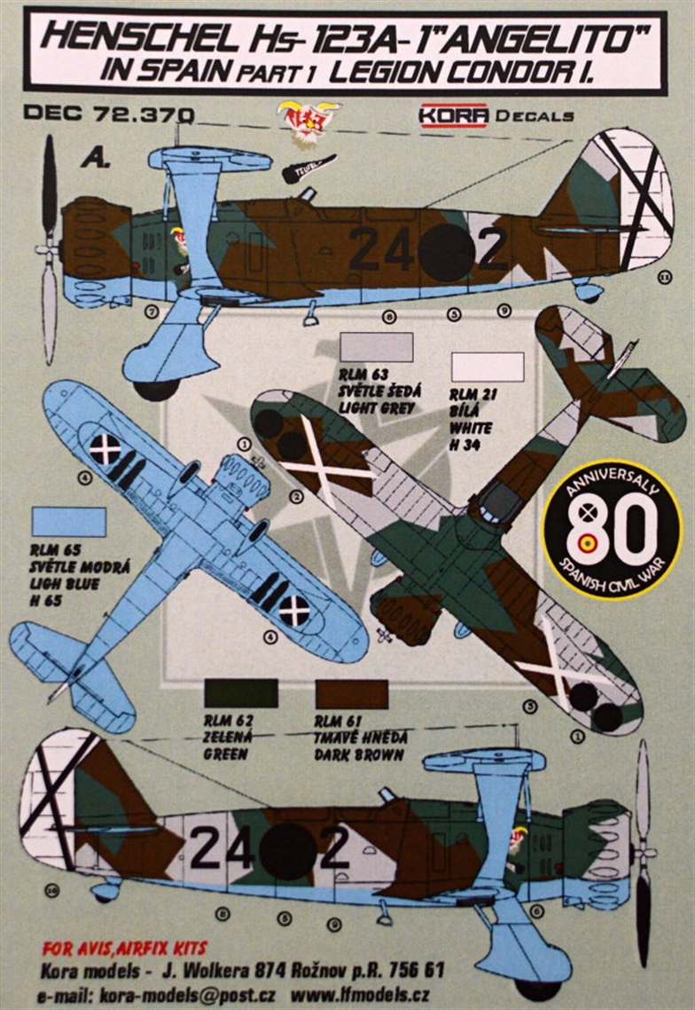KORA MODEL - 1/72 Decals Hs-123A-1 Angelito in Spain Vol.1