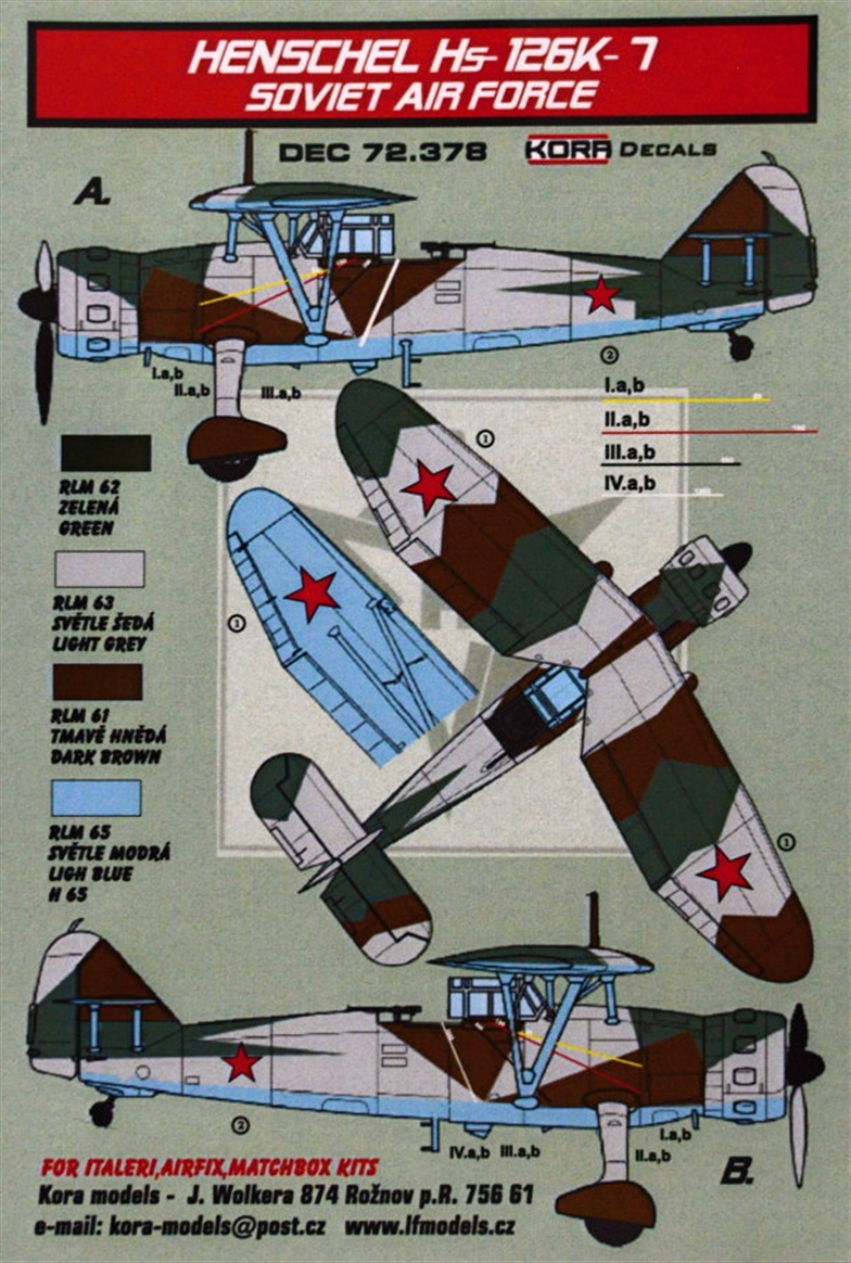 KORA MODEL - 1/72 Decals Hs-126K-7 Soviet Air Force