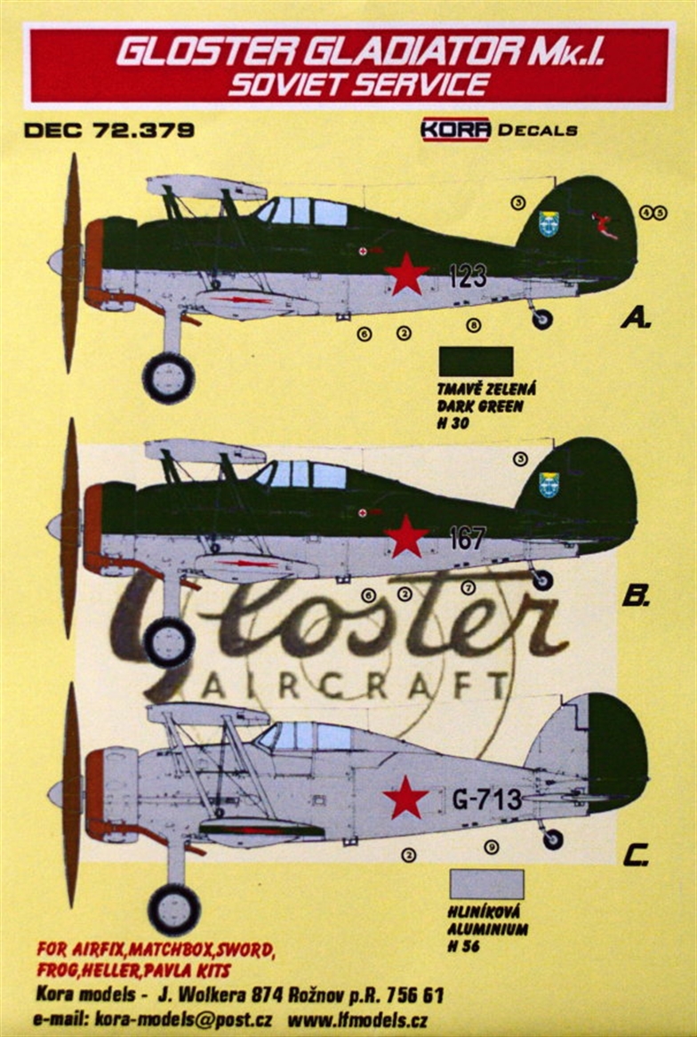 KORA MODEL - 1/72 Decals Gloster Gladiator Mk.I Soviet Service