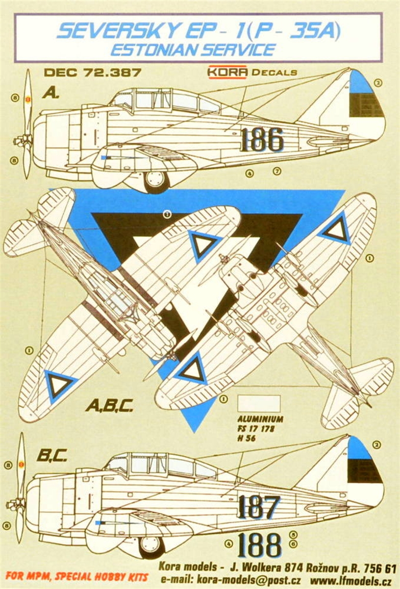 KORA MODEL - 1/72 Decals Seversky EP-1(P-35A) Estonian Service