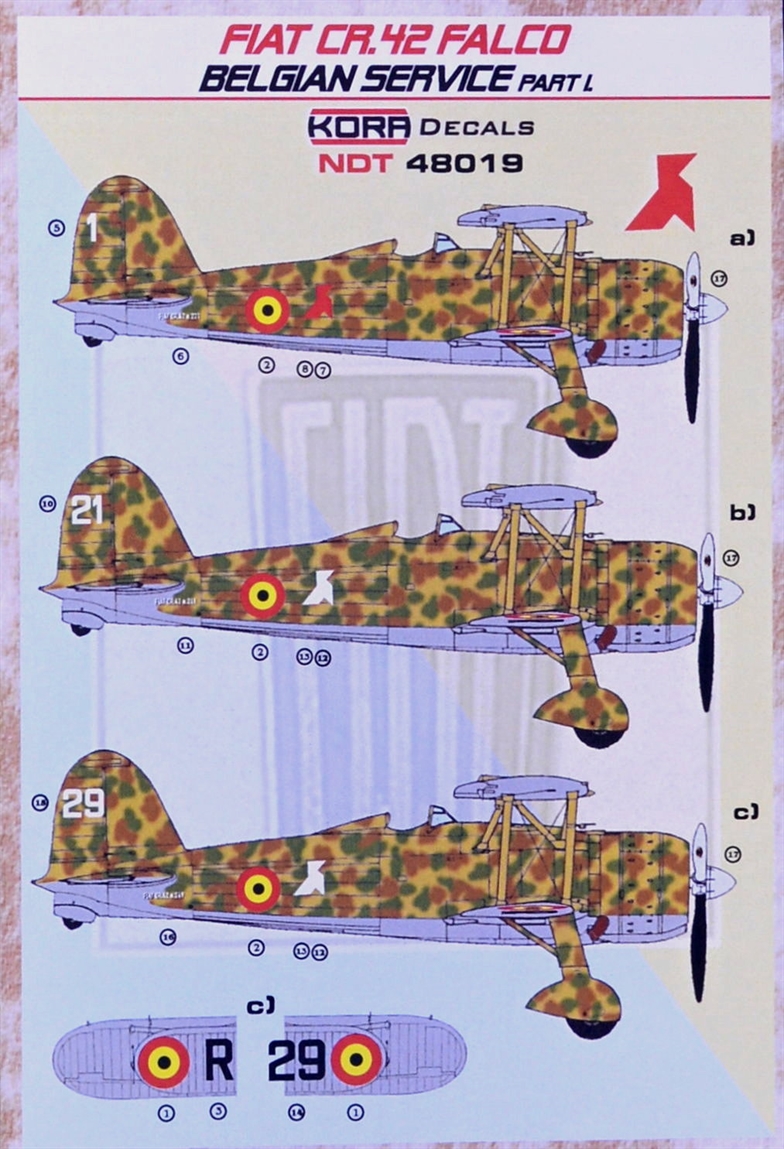 KORA MODEL - 1/48 Decals Fiat CR.42 Falco Belgium Part 1