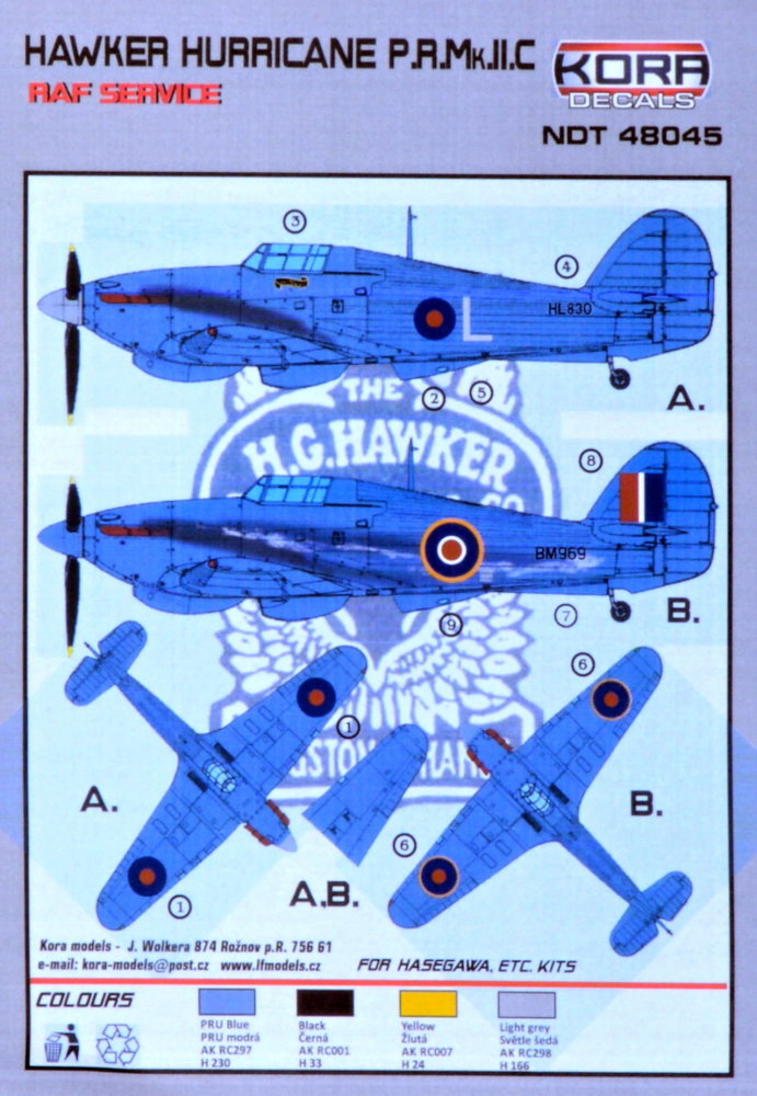 KORA MODEL - 1/48 Decals H.Hurricane PR Mk.IIC ( RAF service)