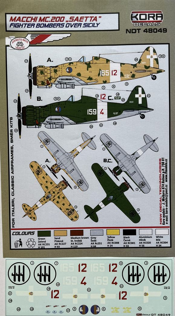 KORA MODEL - 1/48 Decals MC.200 Fighter Bombers over Sicily