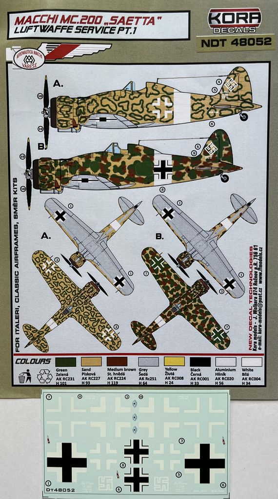 KORA MODEL - 1/48 Decals MC.200 Saetta Luftwaffe Service Part 1
